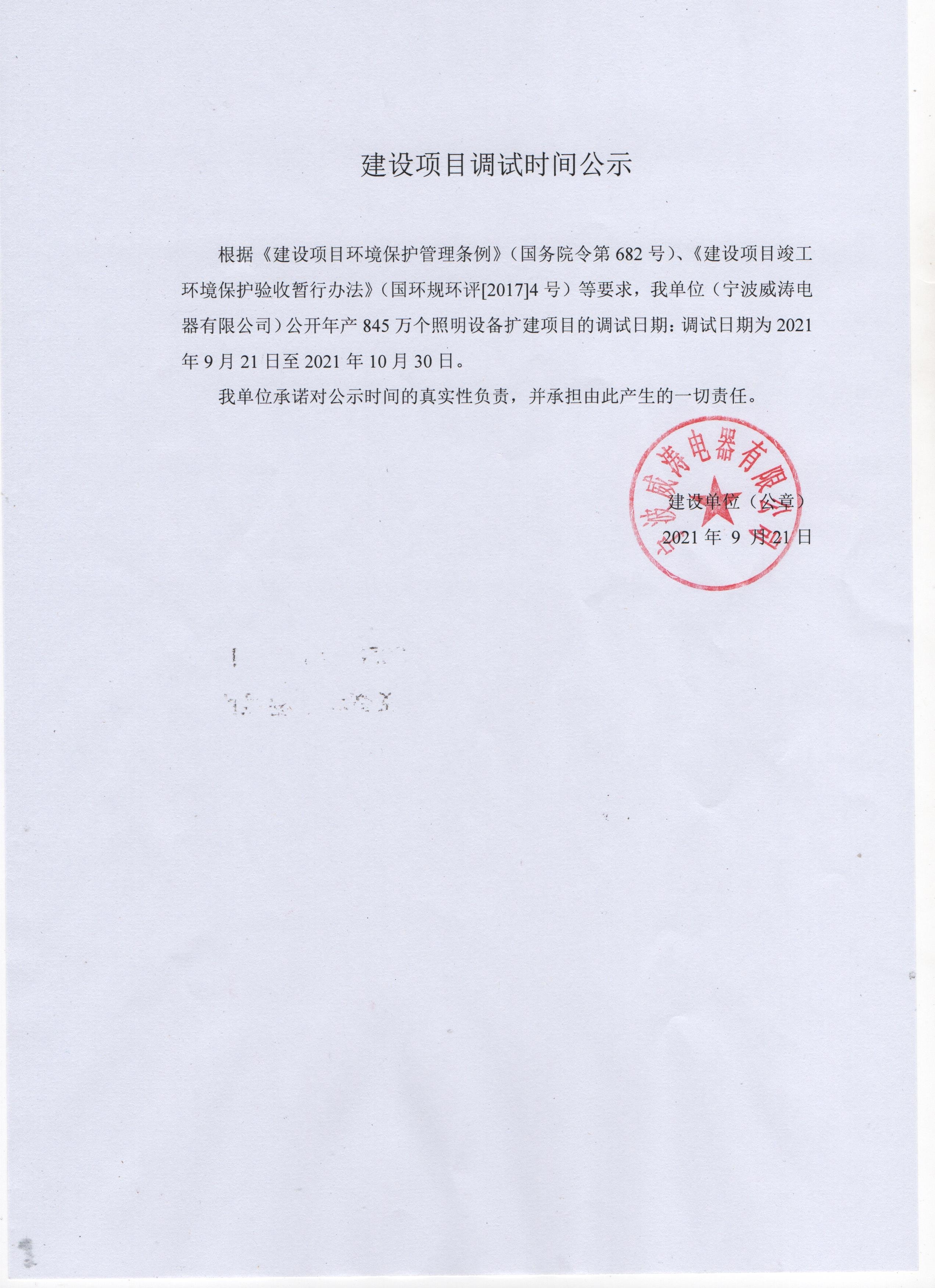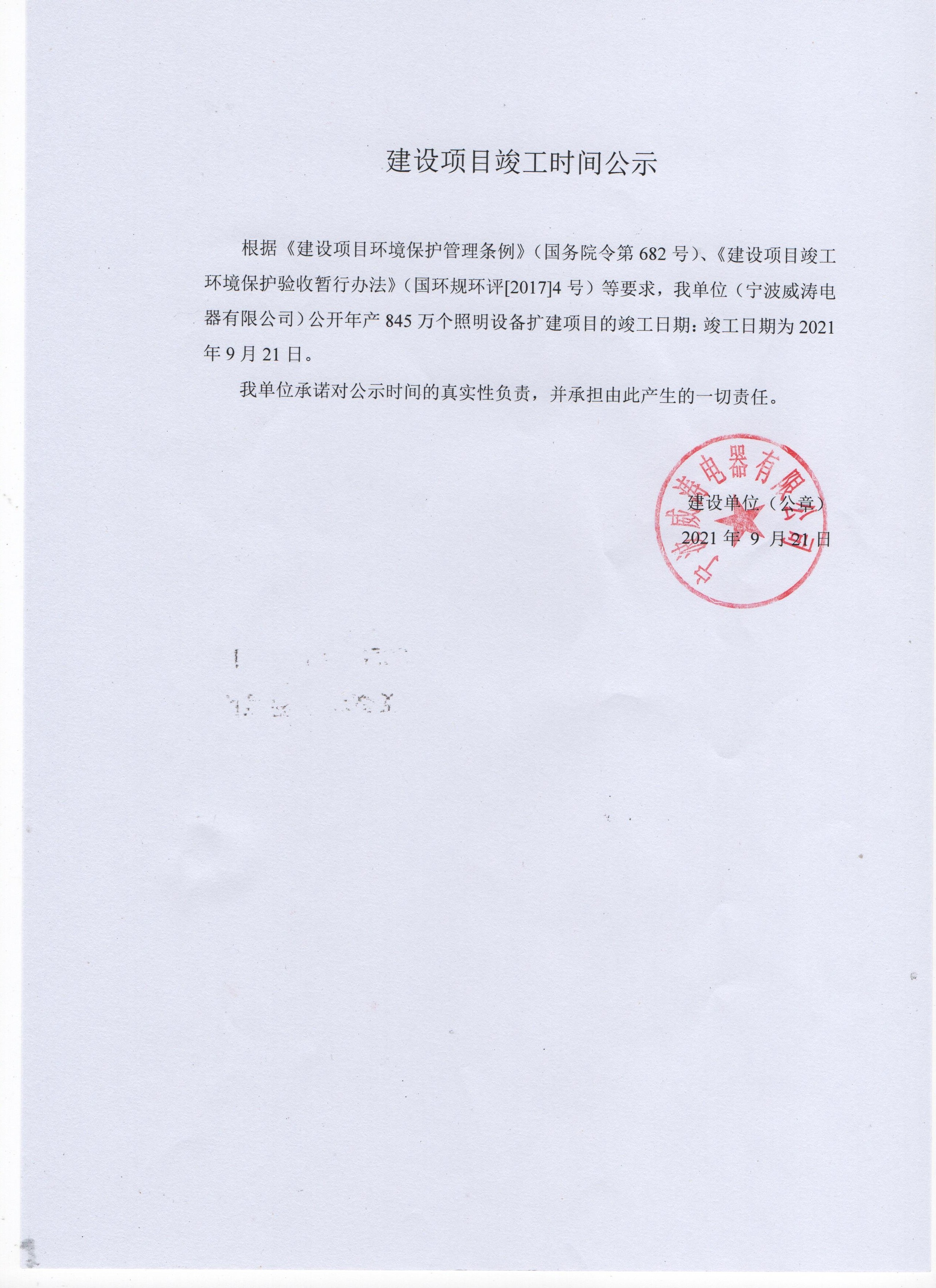 項目名稱:寧波威濤電器有限公司年產845萬個照明設備擴建項目