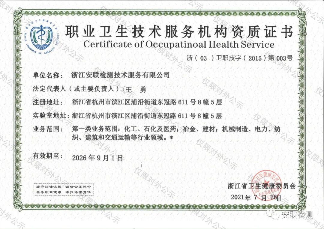 安聯(lián)檢測順利完成職業(yè)衛(wèi)生技術(shù)服務(wù)機(jī)構(gòu)資質(zhì)續(xù)展工作