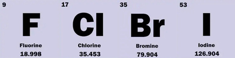 氟(F)、氯(Cl)、溴(Br)、碘(I)、砹(At),簡稱鹵素。由于砹為放射性元素,在產品中幾乎不存在,前四種元素在產品中特別是在聚合物材料中以有機化合物形式存在。所以人們常說的鹵素只是指:氟、氯、溴和碘。鹵素廣泛應用于阻燃劑(PBB,PBDE,TBBP-A,PCB,六溴十二烷,三溴苯酚,短鏈氯化石蠟),制冷劑,溶劑,有機化工原料,農藥殺蟲劑,漂白劑,羊毛脫脂等。